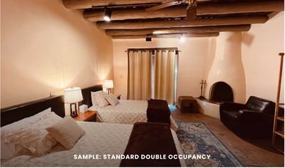 If you choose this option, you and your partner will be placed in a room with a king bed (can have two singles by request) in the Pueblo Building. You will have your own bathroom in your room. Couple Room and Board Total $1680 which is $840 per person (plus 3% if you pay by cc).